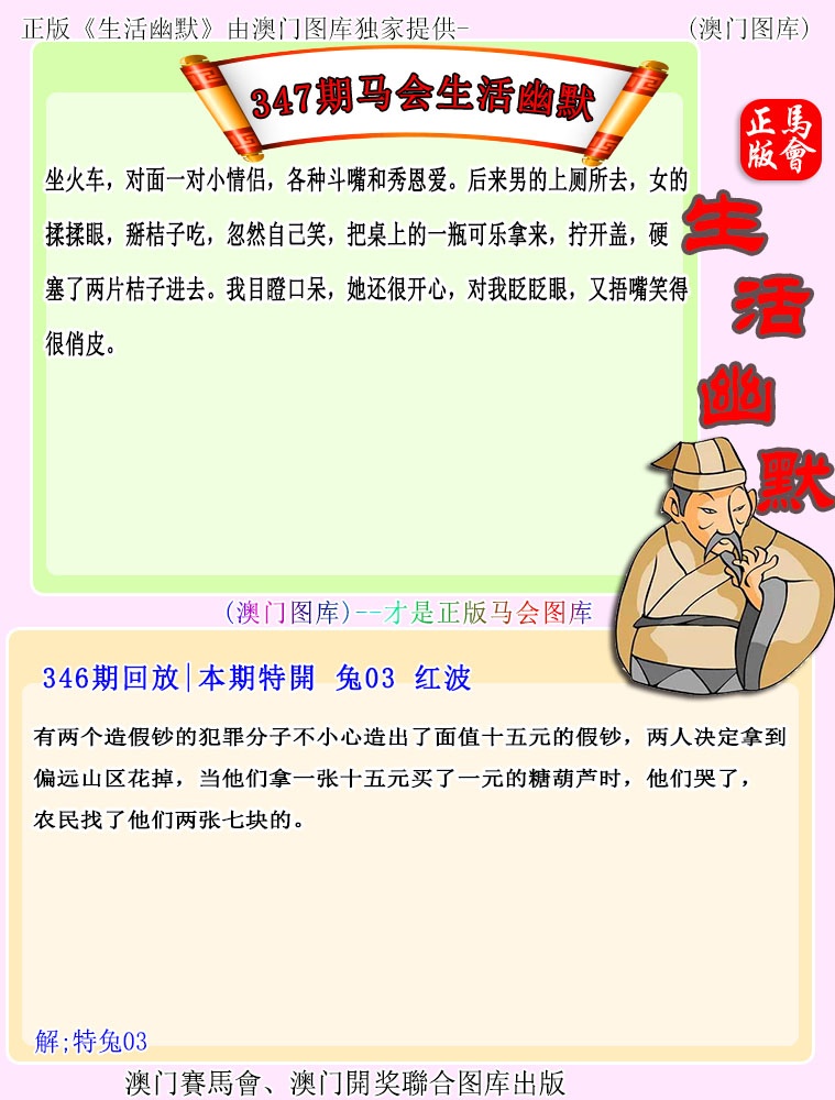 347期: 澳门博彩皇 『幽默猜测图』已更新